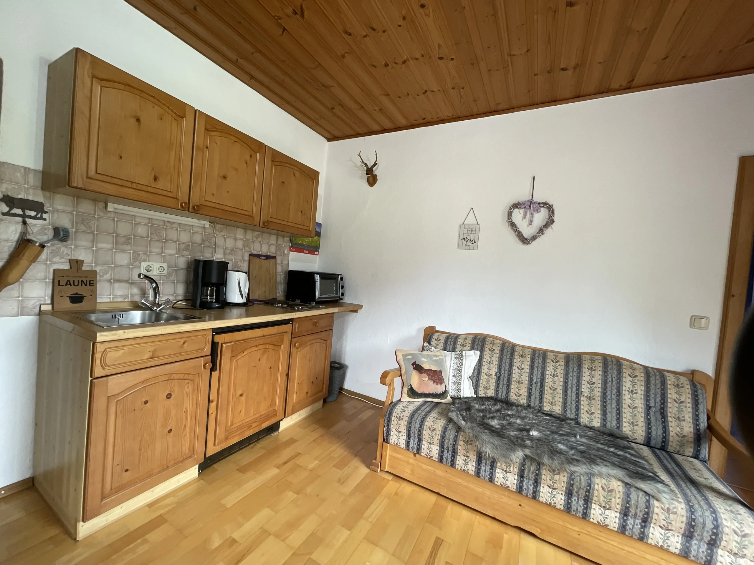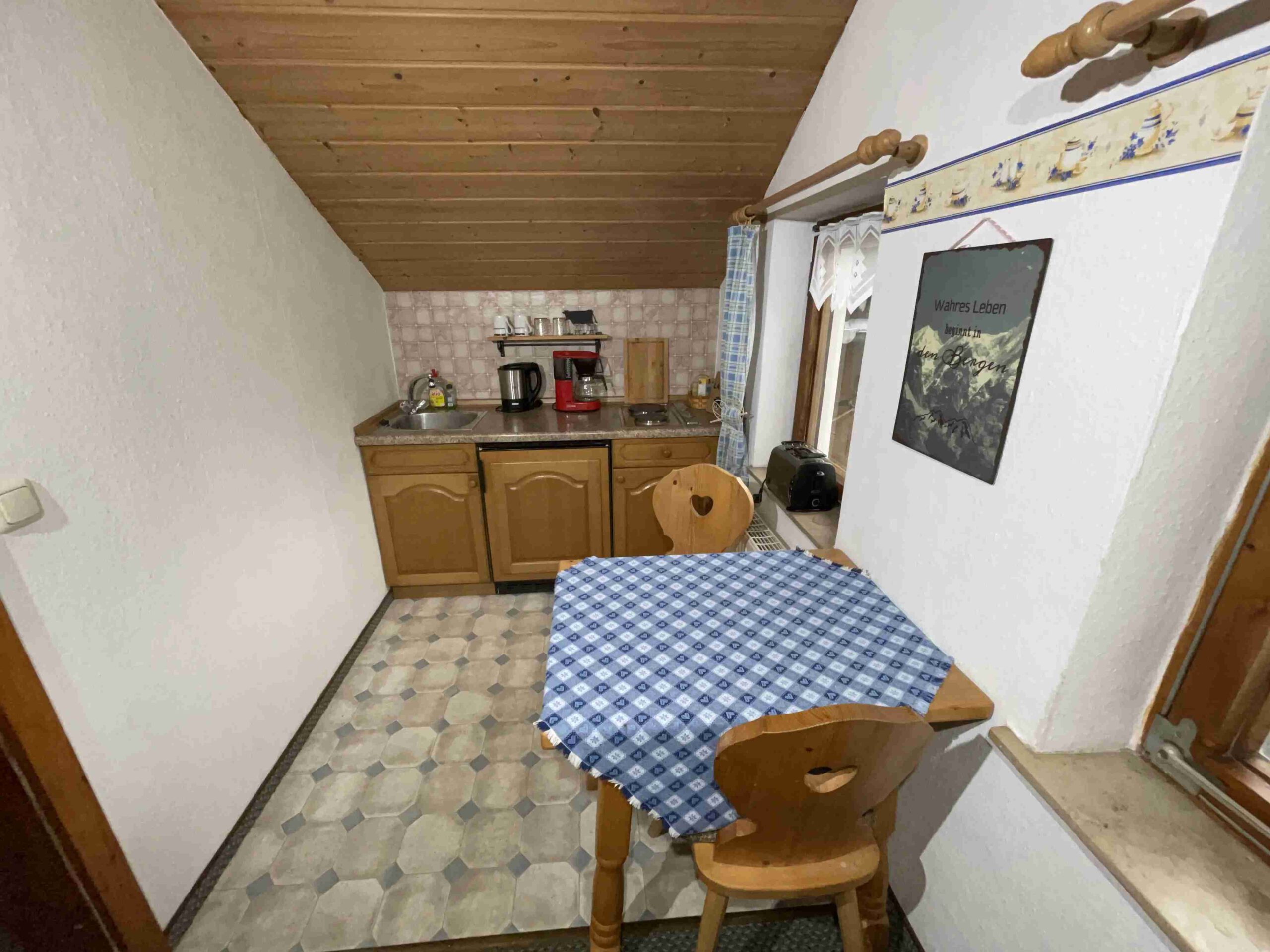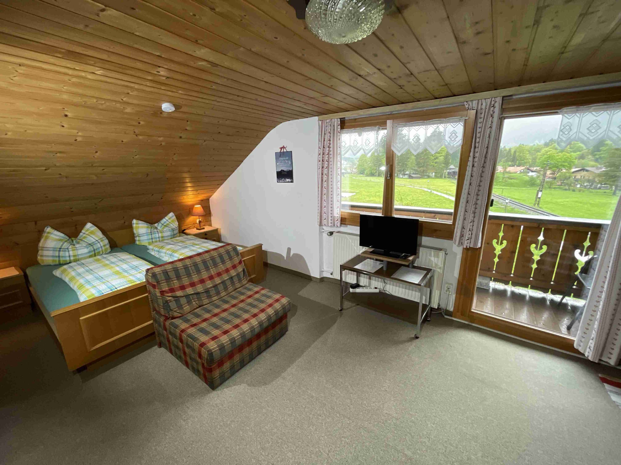 Das Apartment Panoramablick hält was der Name Verspricht. Mit absolut traumhaften Ausblick auf Ziegspitze und Wank bietet sie Platz für 2 Personen. Sie hat eine kleine, gemütliche Sitzecke, ein Sofa und eine offene Küche sowie ein eigenes Bad mit Dusche. Das Schlafzimmer mit Doppelbett lädt zum erholsamen Schlafen und Träumen…